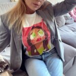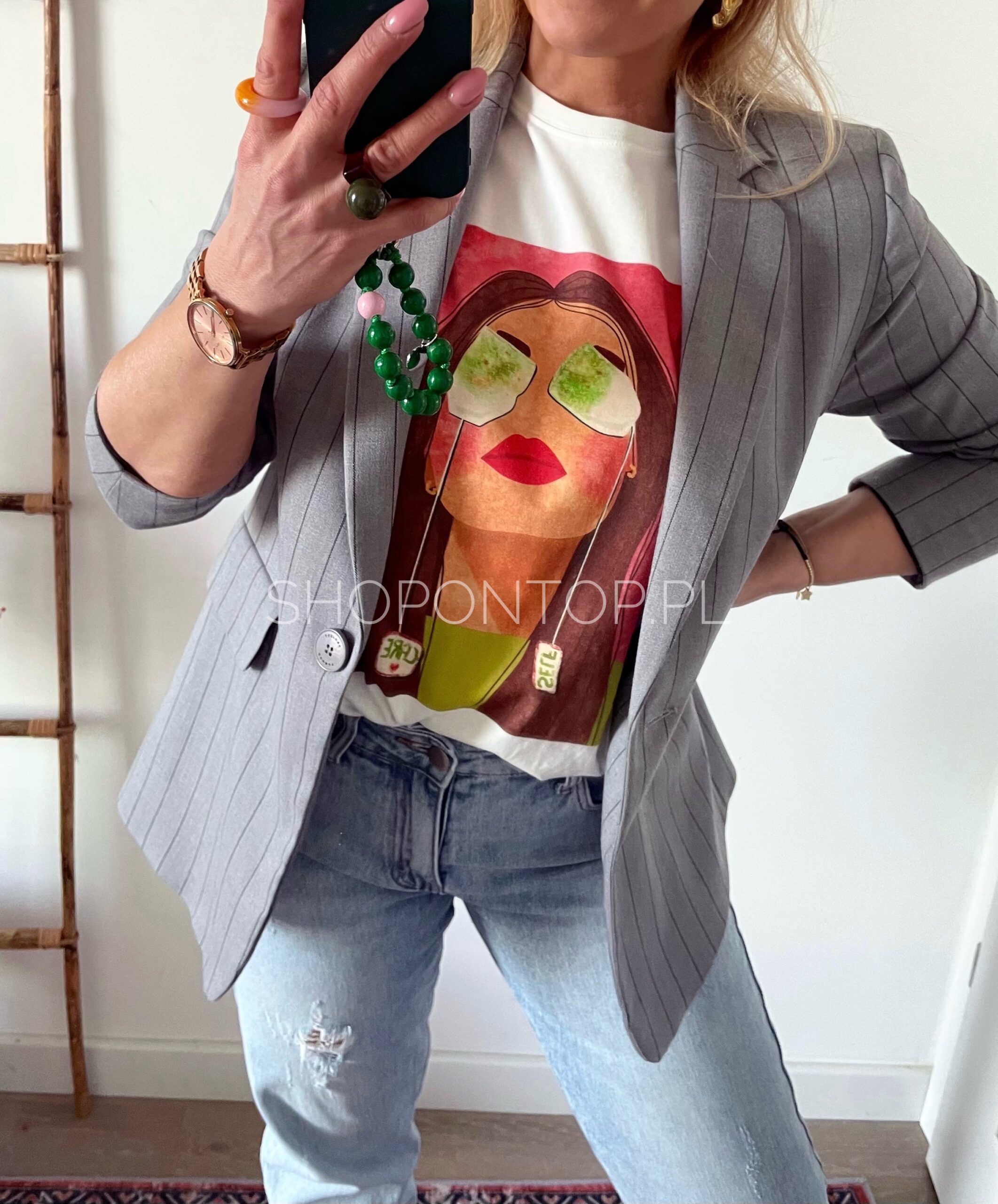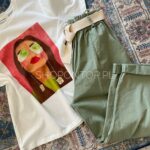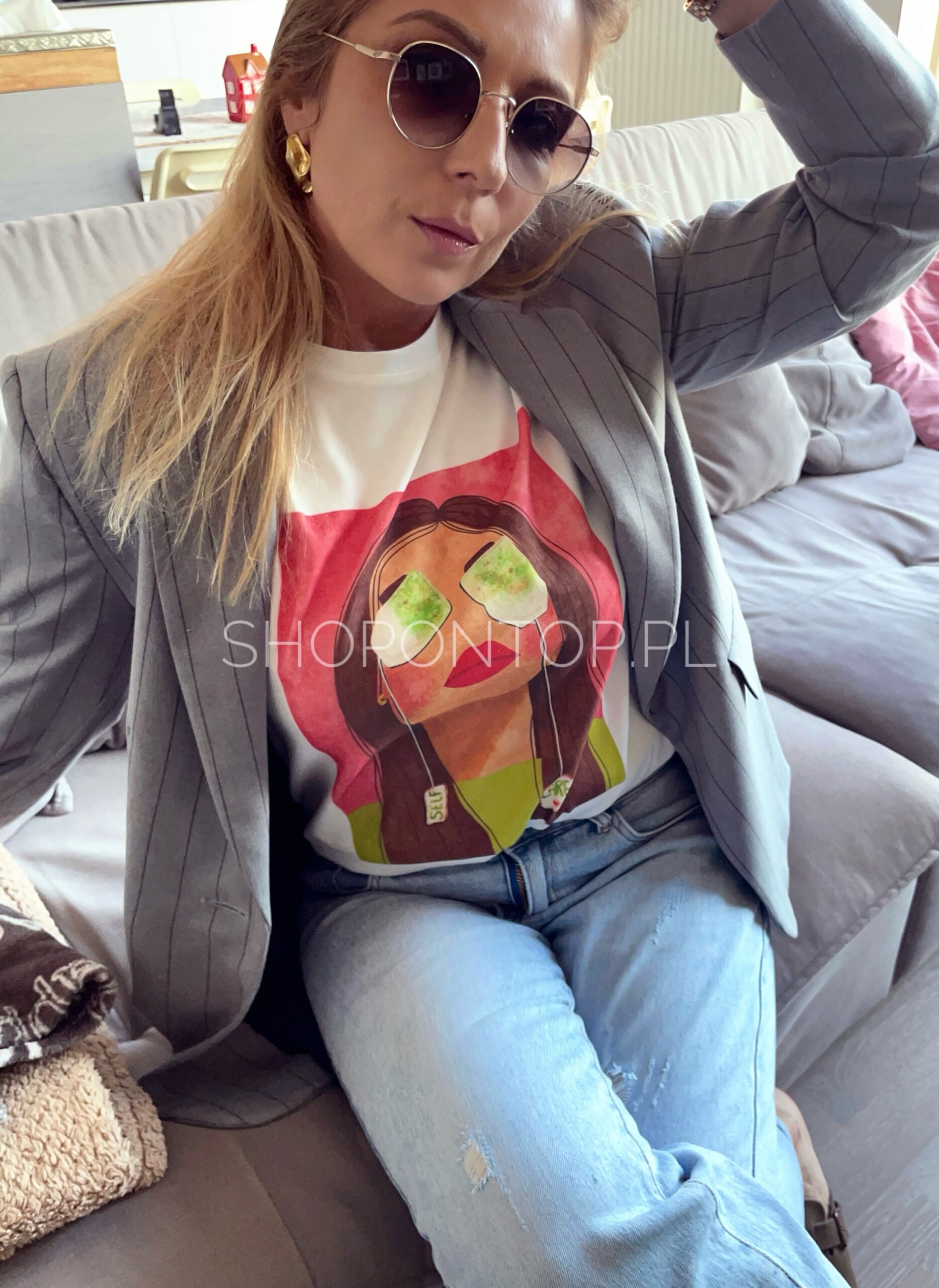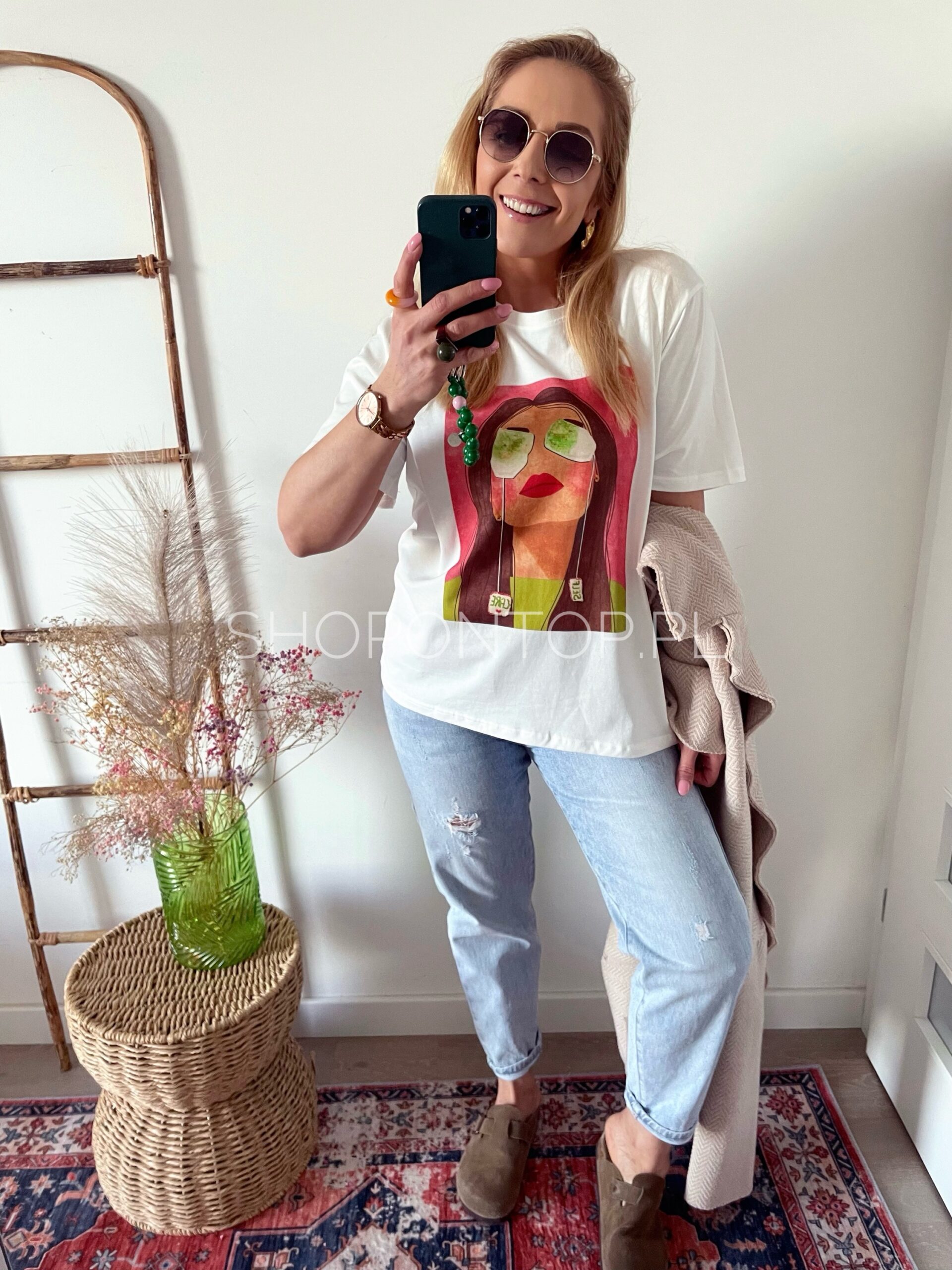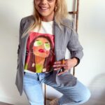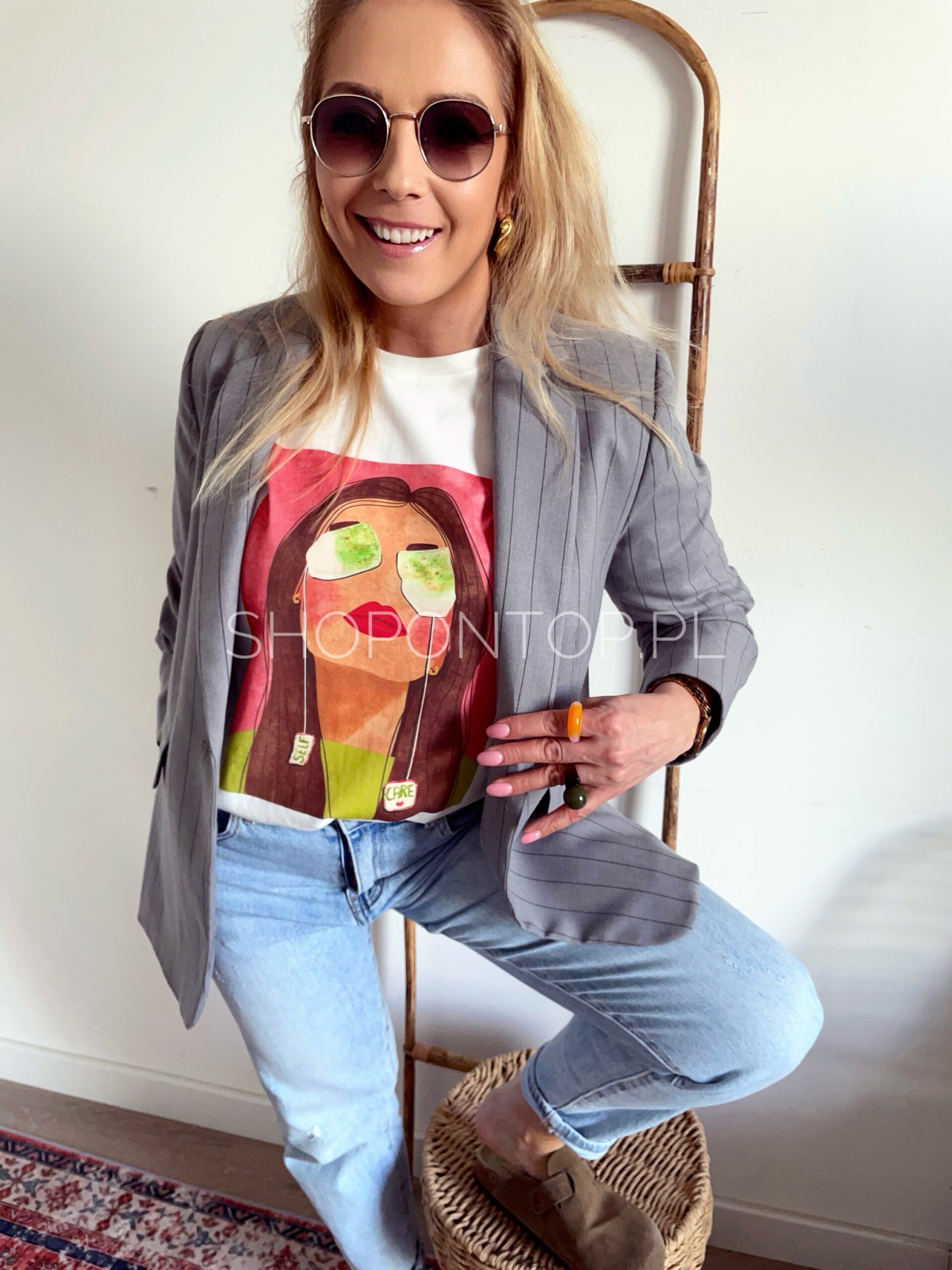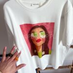 Cudowne, żywe, wiosenne kolory i nadruk z uroczą kobietą świetnie się sprawdzi pod marynarki, sweterki i solo!