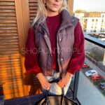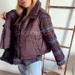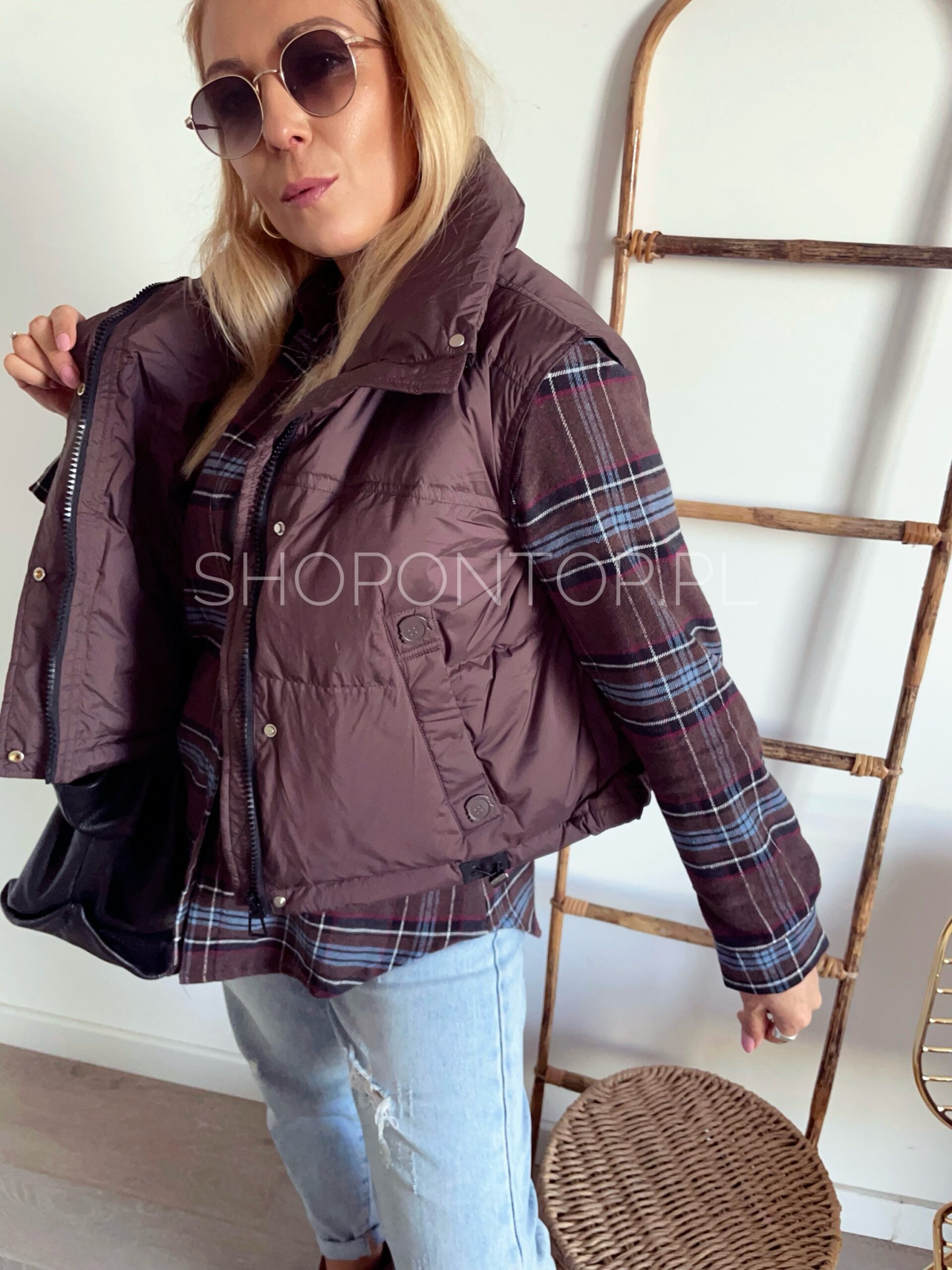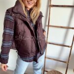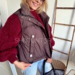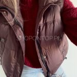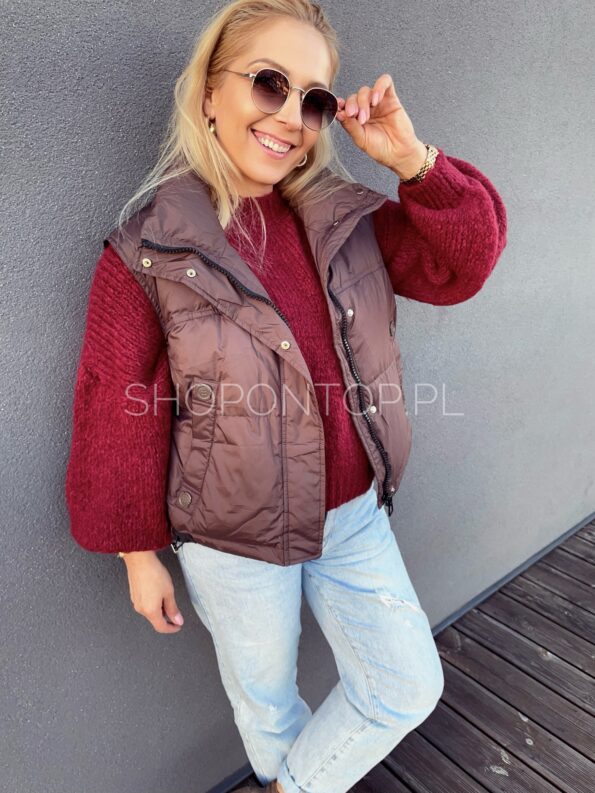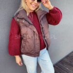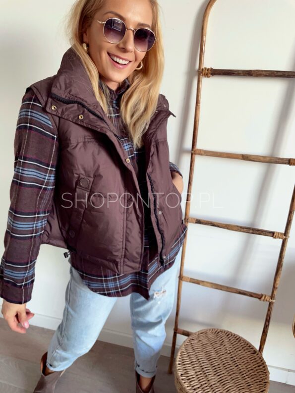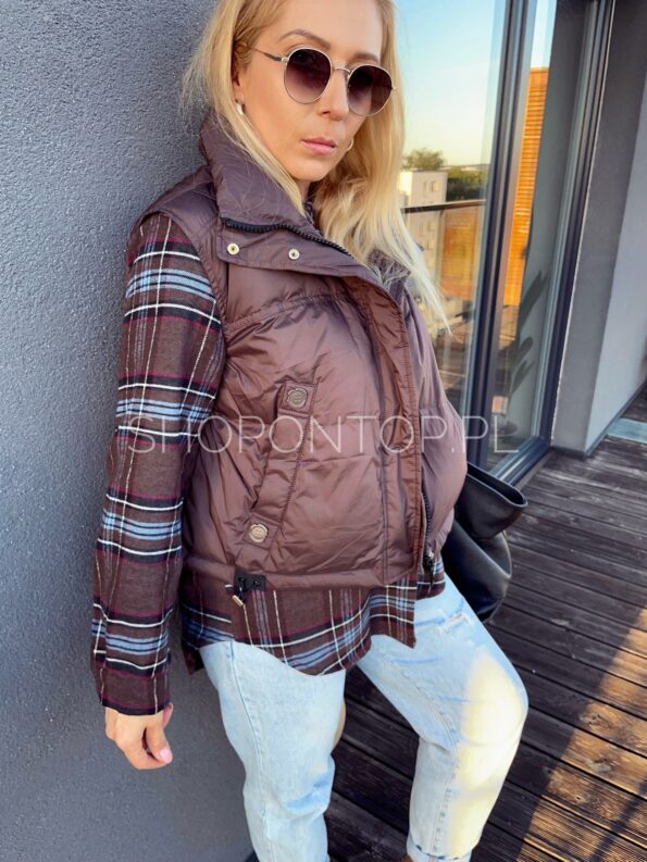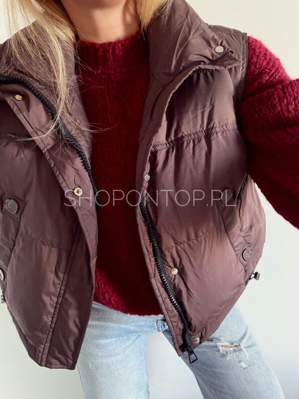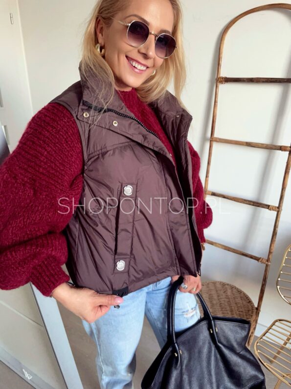 Brązowa, fajna kamizelka zapinana na zamek i dodatkowo napki.