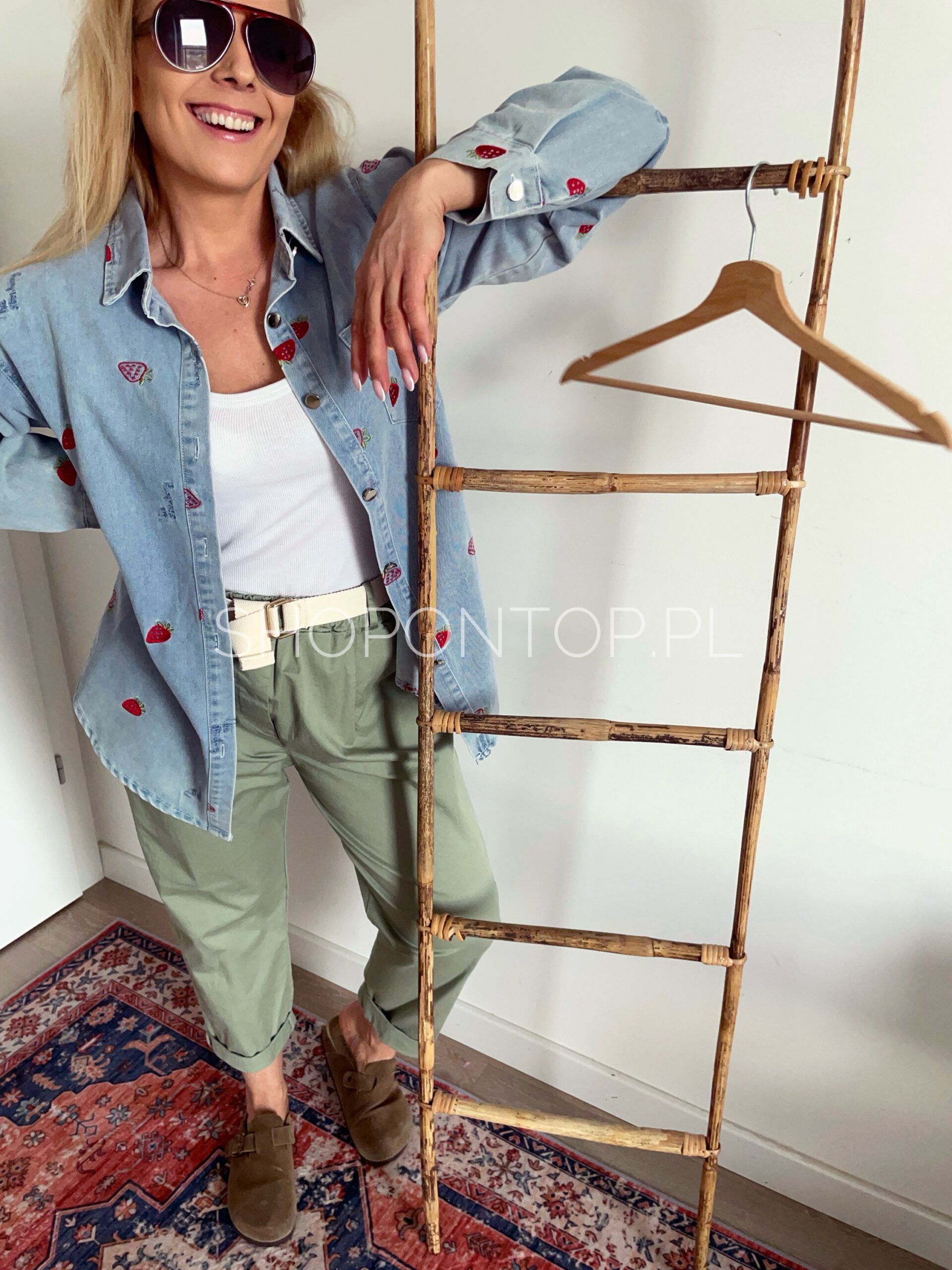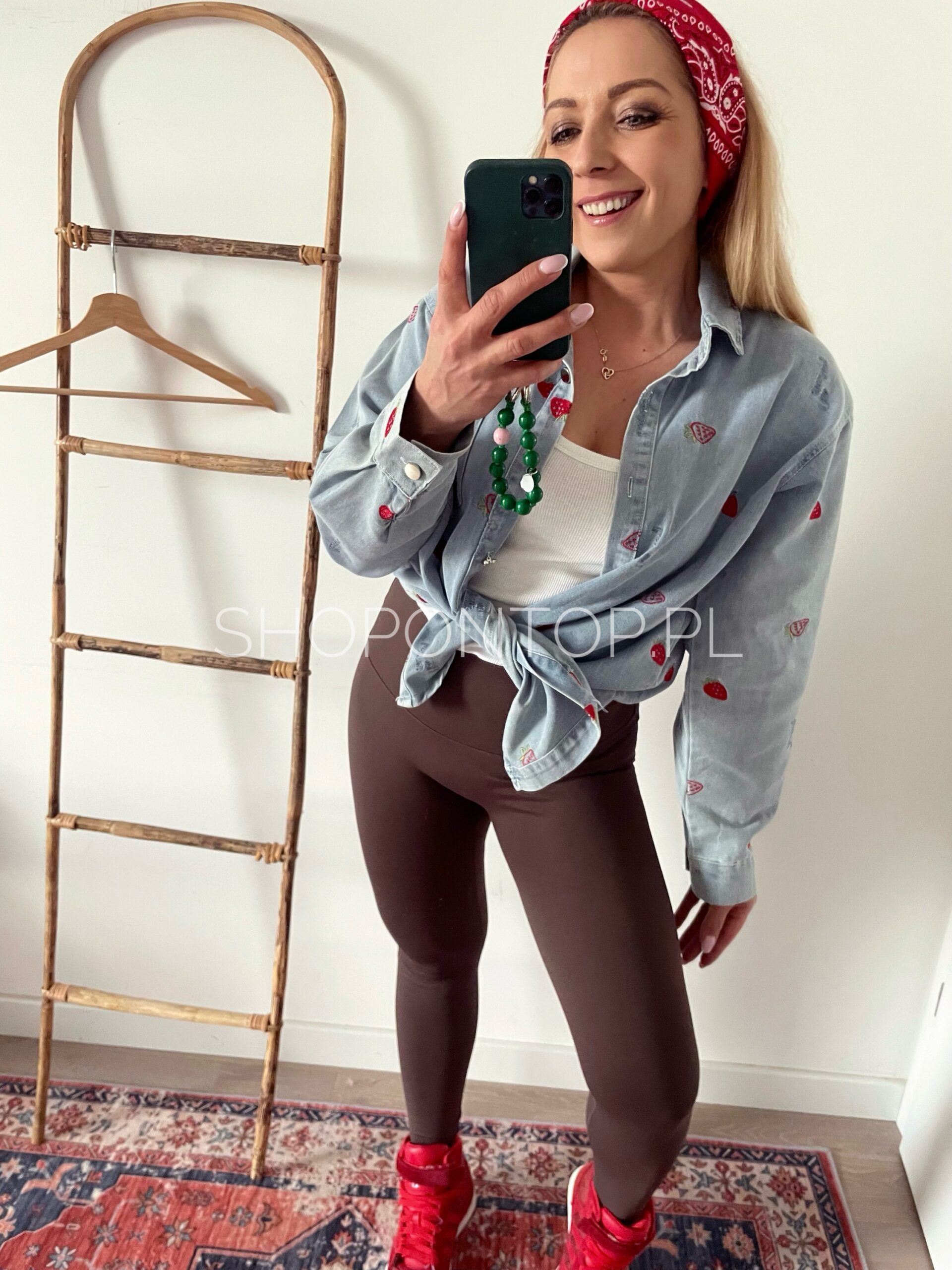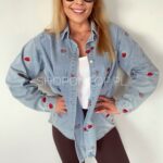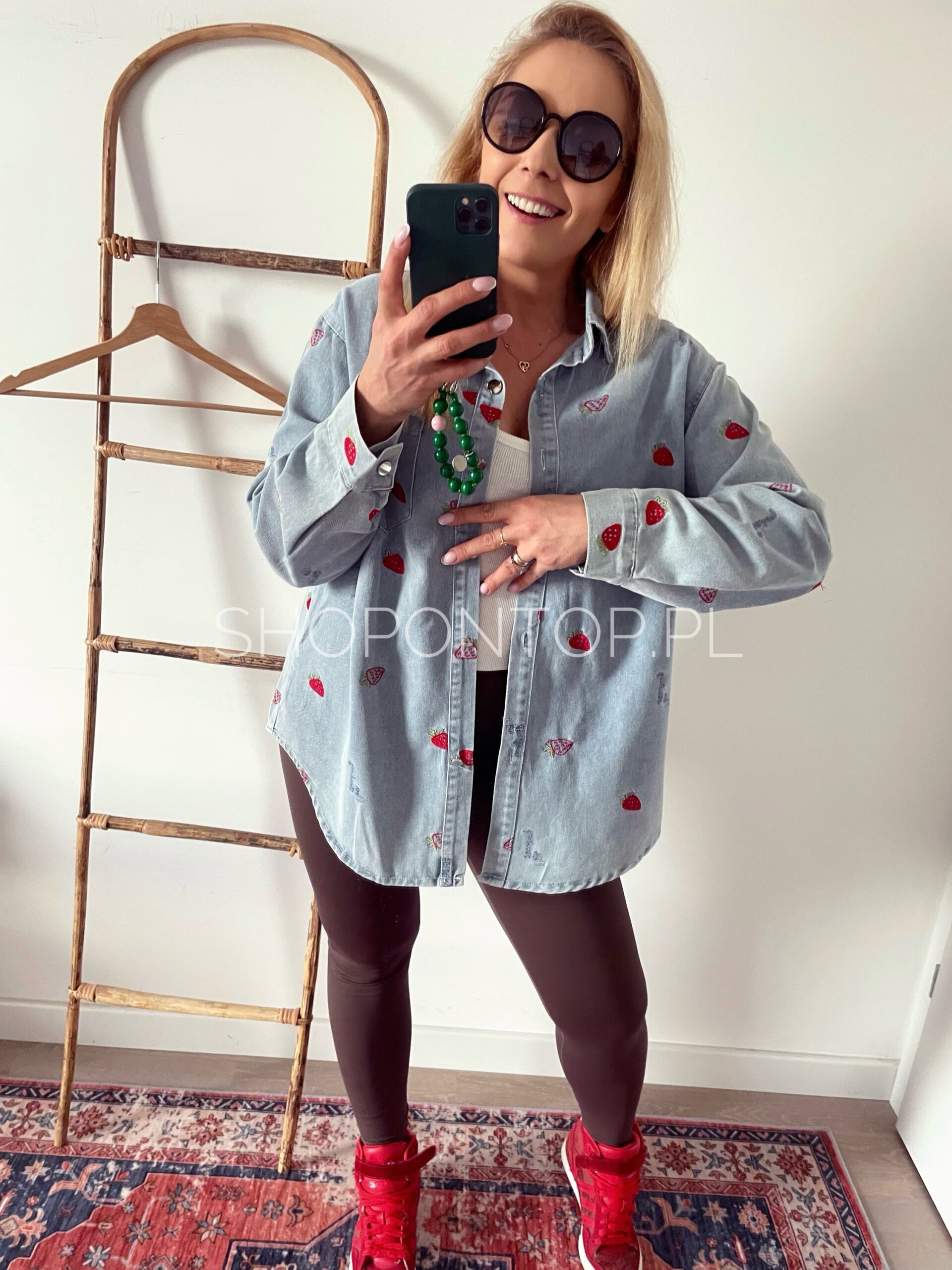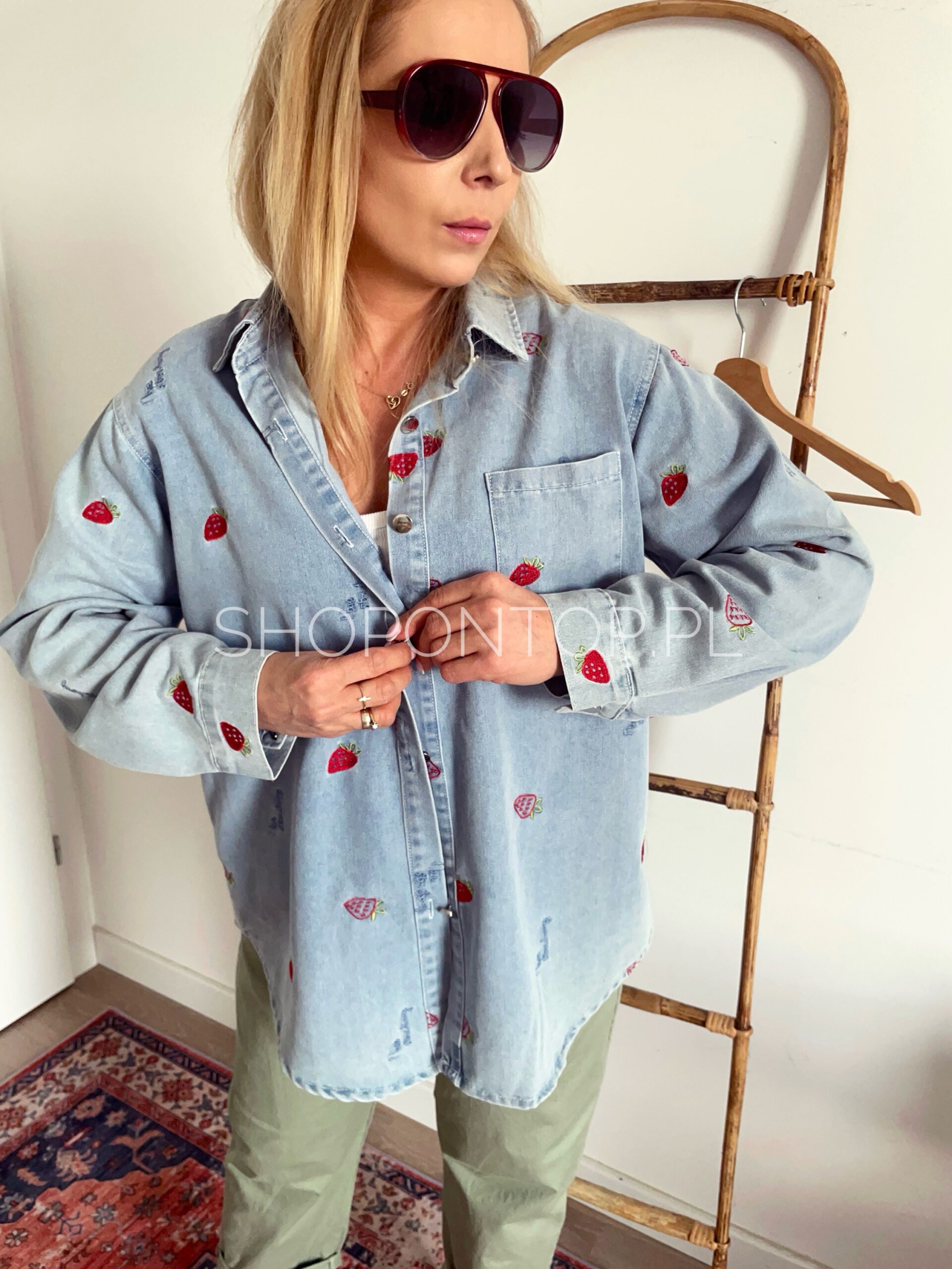 Rewelacyjna jeansowa koszula w urocze truskawki.