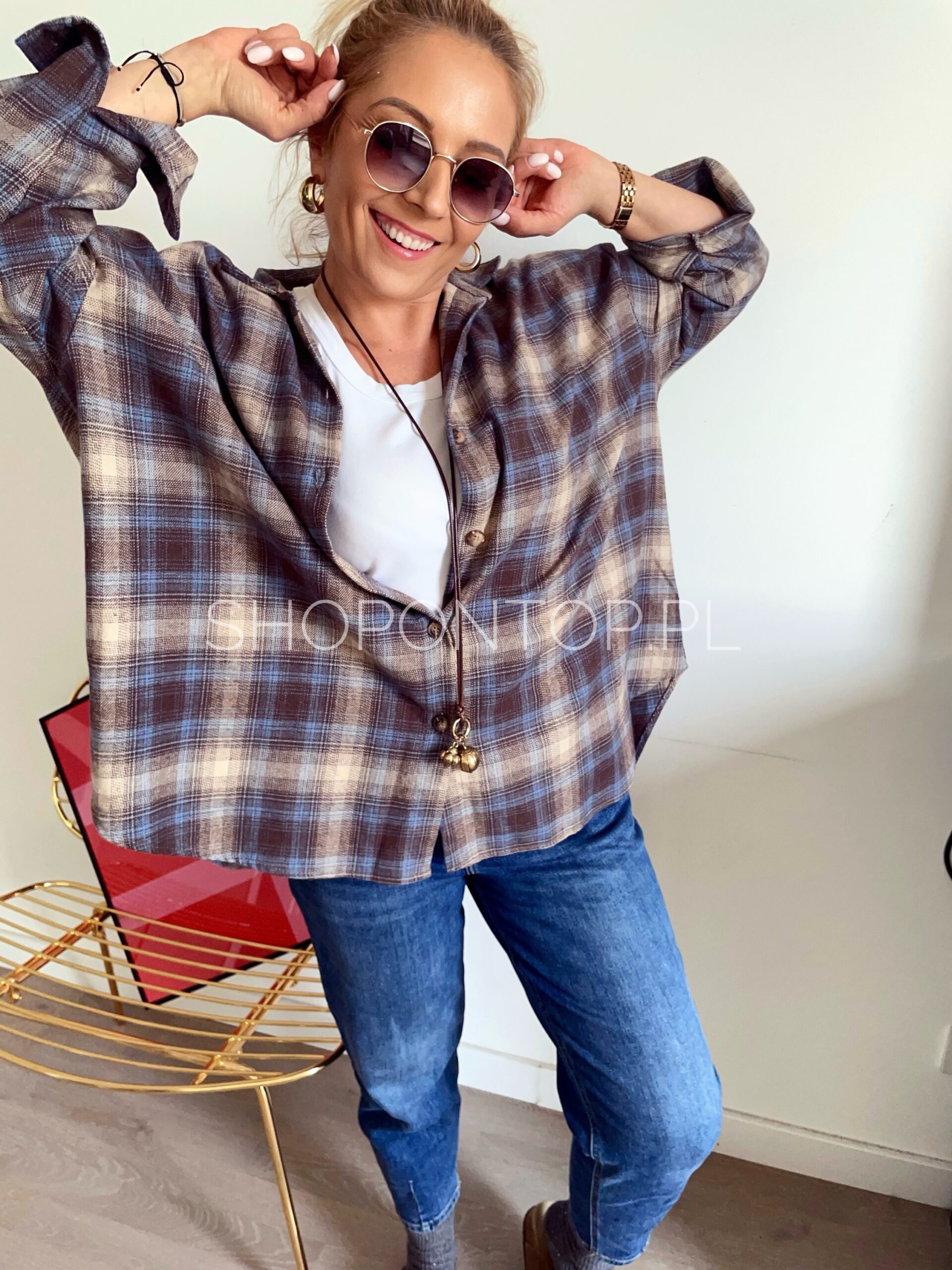 Świetna koszula w fasonie oversize, modna kratka ,długi rękaw.