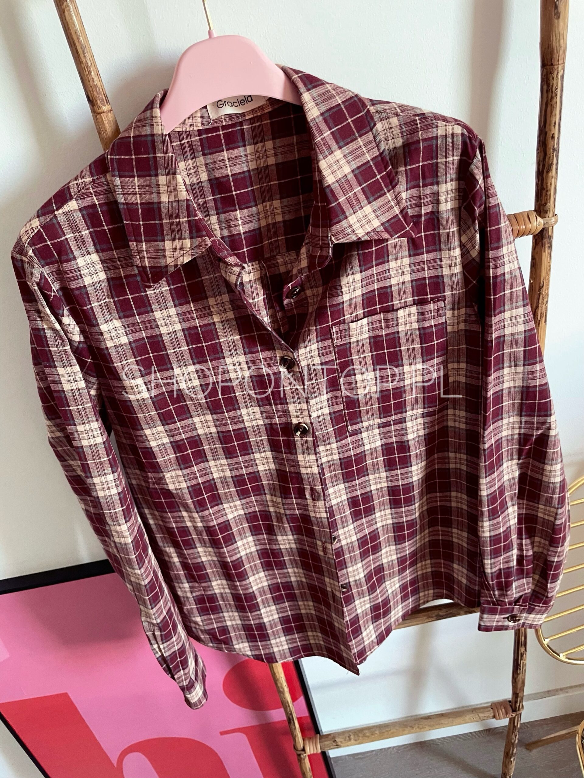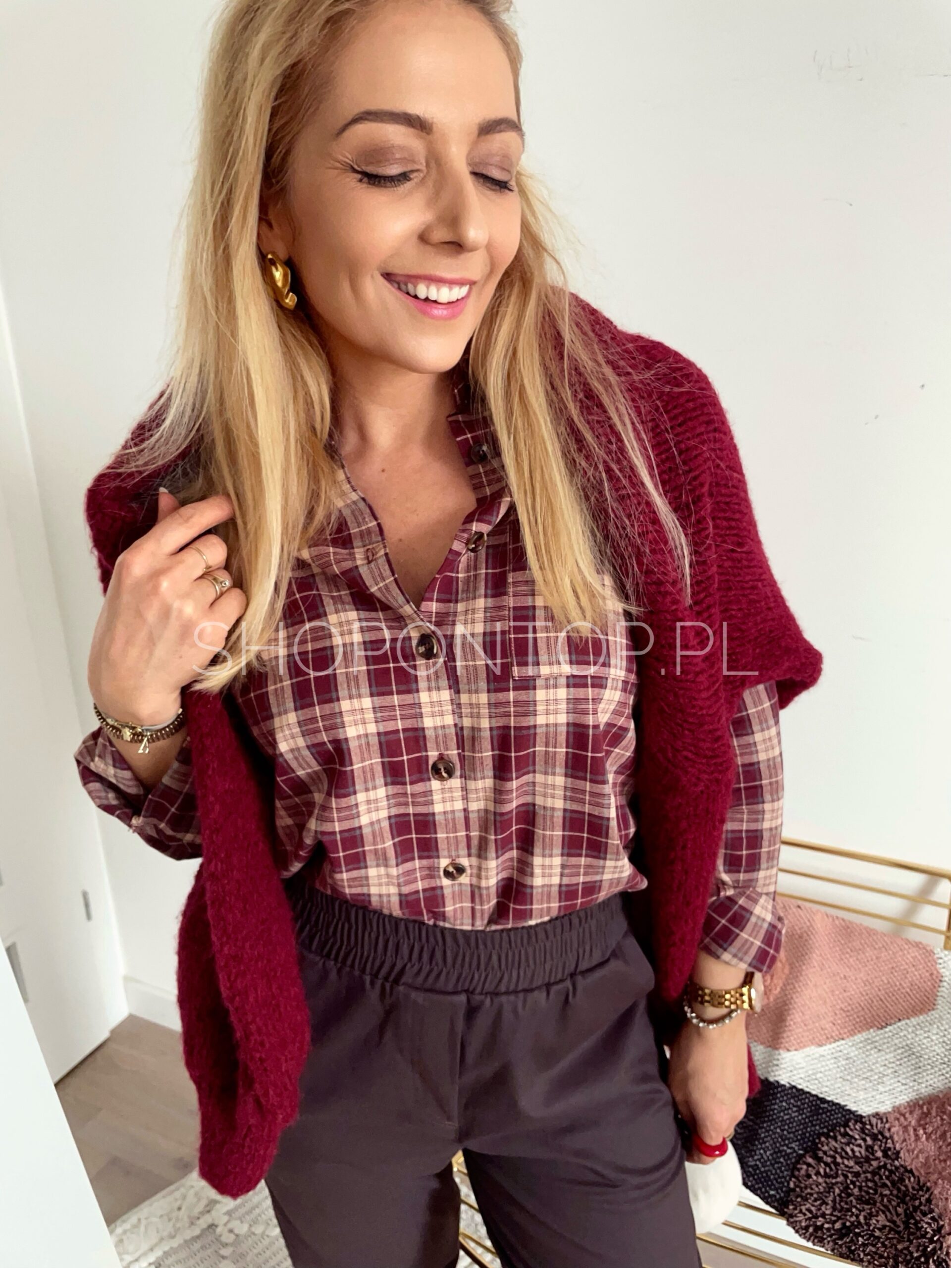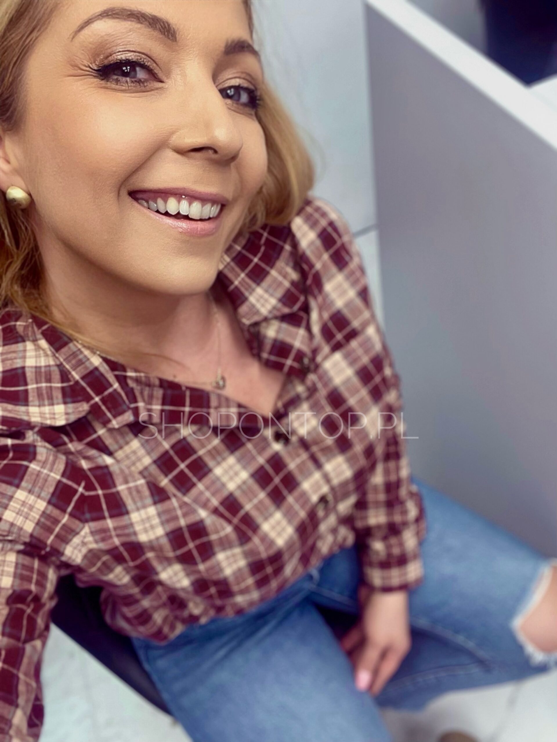 Kolor bordo z dodatkiem beżu, bardzo fajna koszula, tym razem cieńsza.