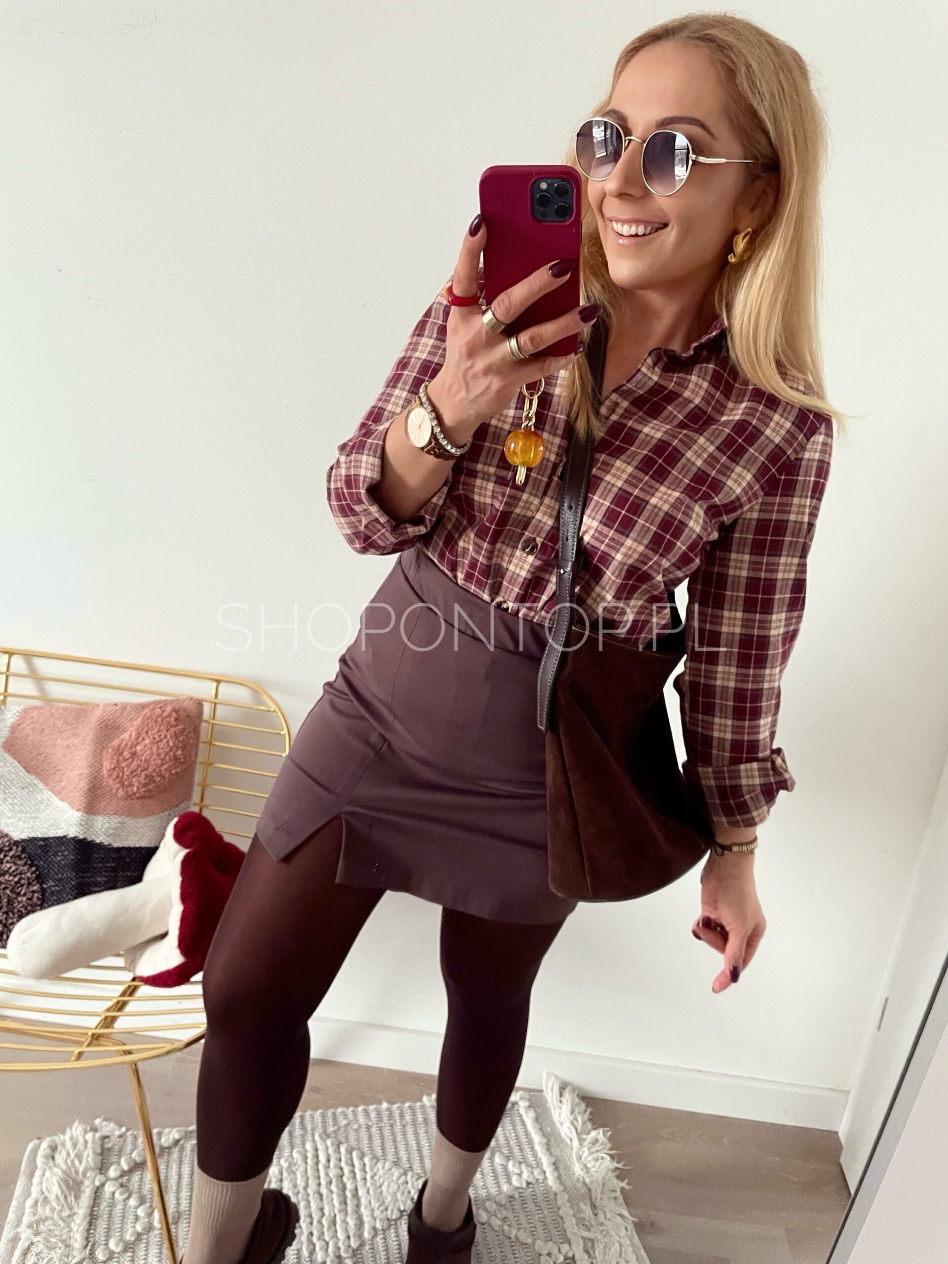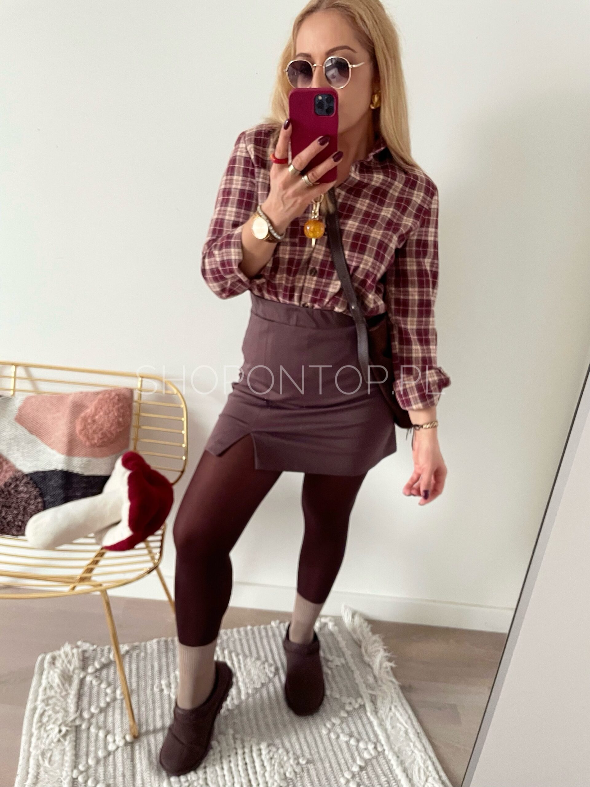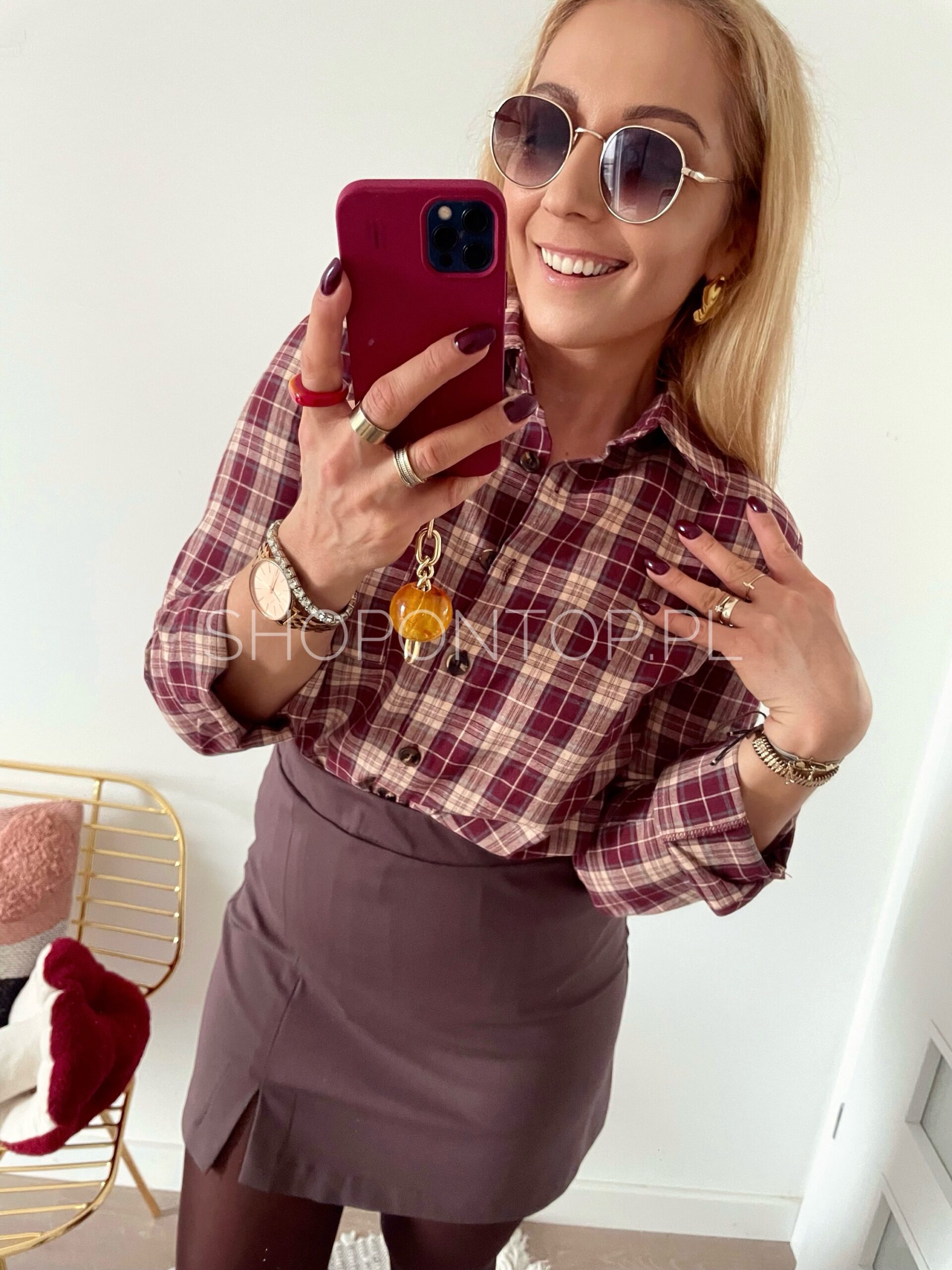 Kolor bordo z dodatkiem beżu, bardzo fajna koszula, tym razem cieńsza.