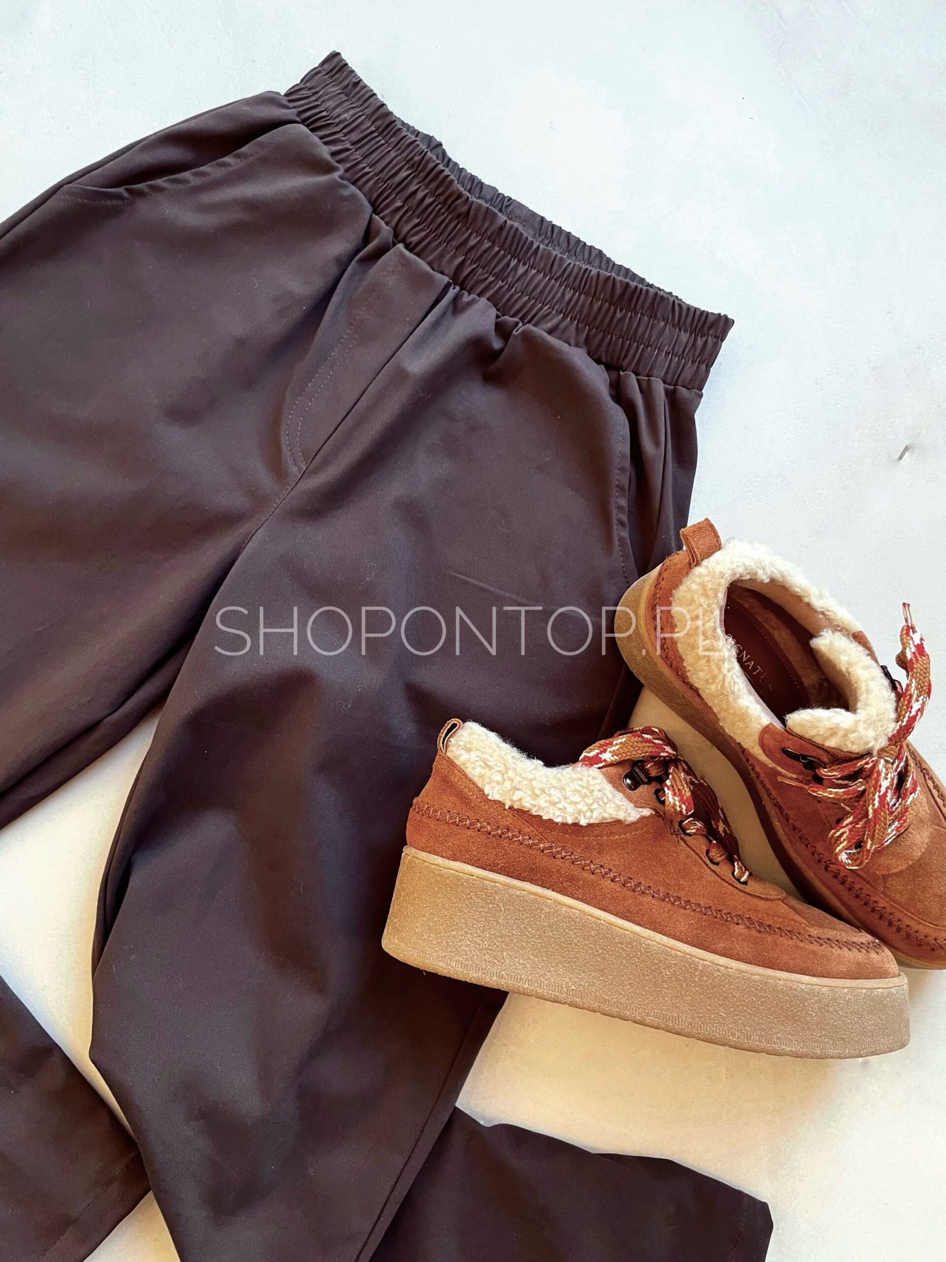 Ładna, szersza guma w pasie, przymarszczana, sprawia, że spodnie leżą wyśmienicie!