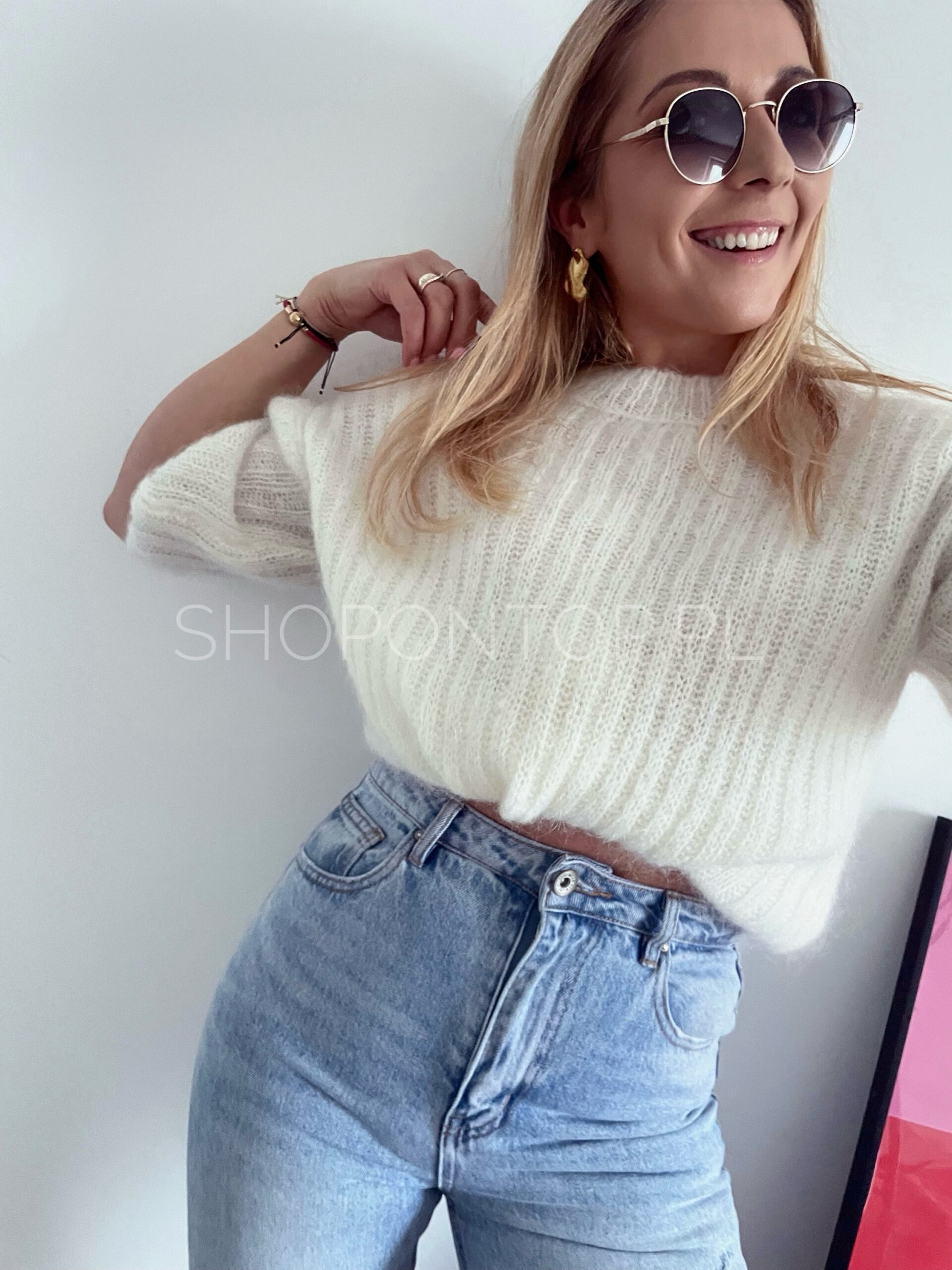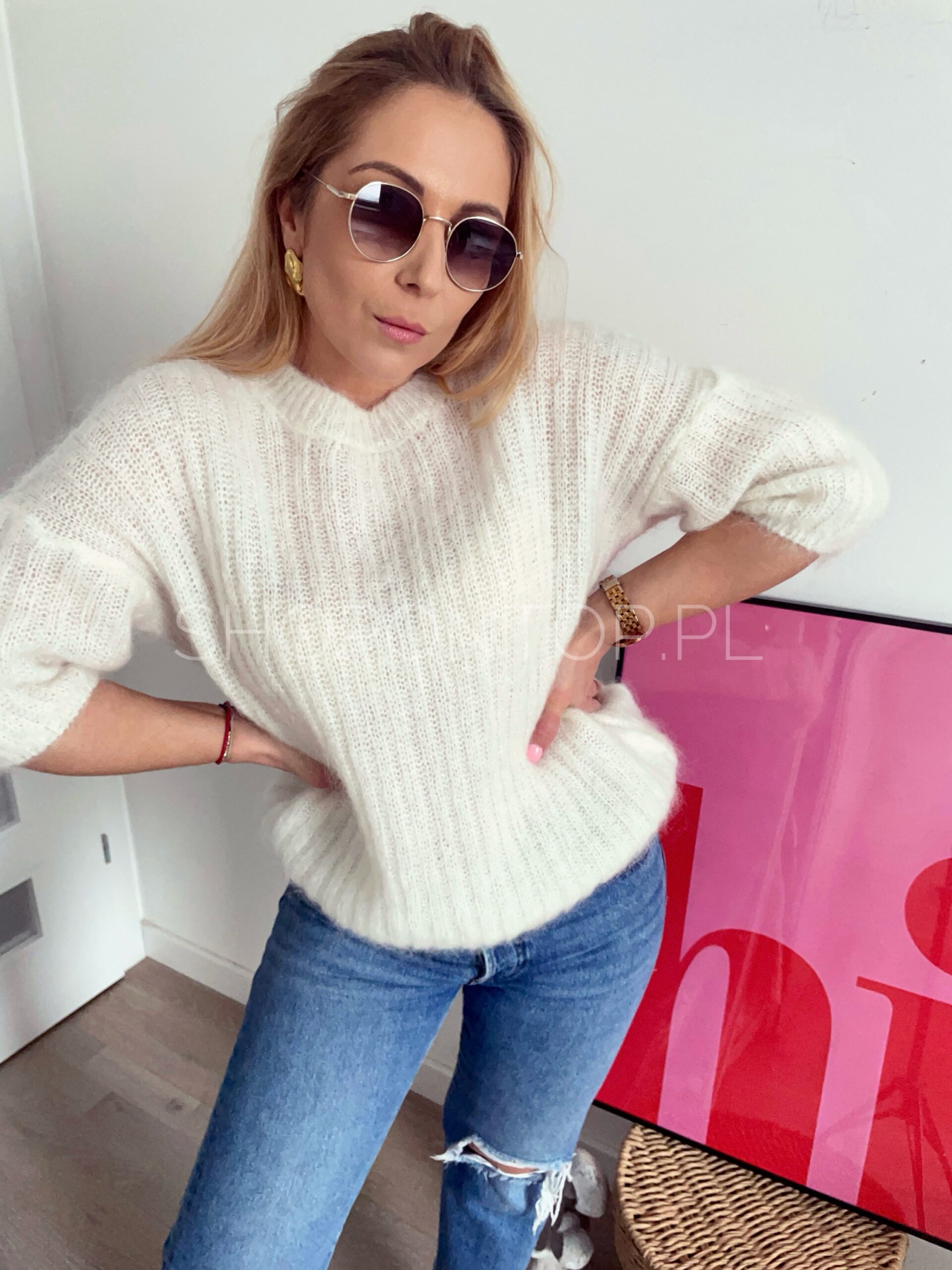 Śliczny, klasyczny sweterek w puszystej dzianinie z niebyle jakim składem!