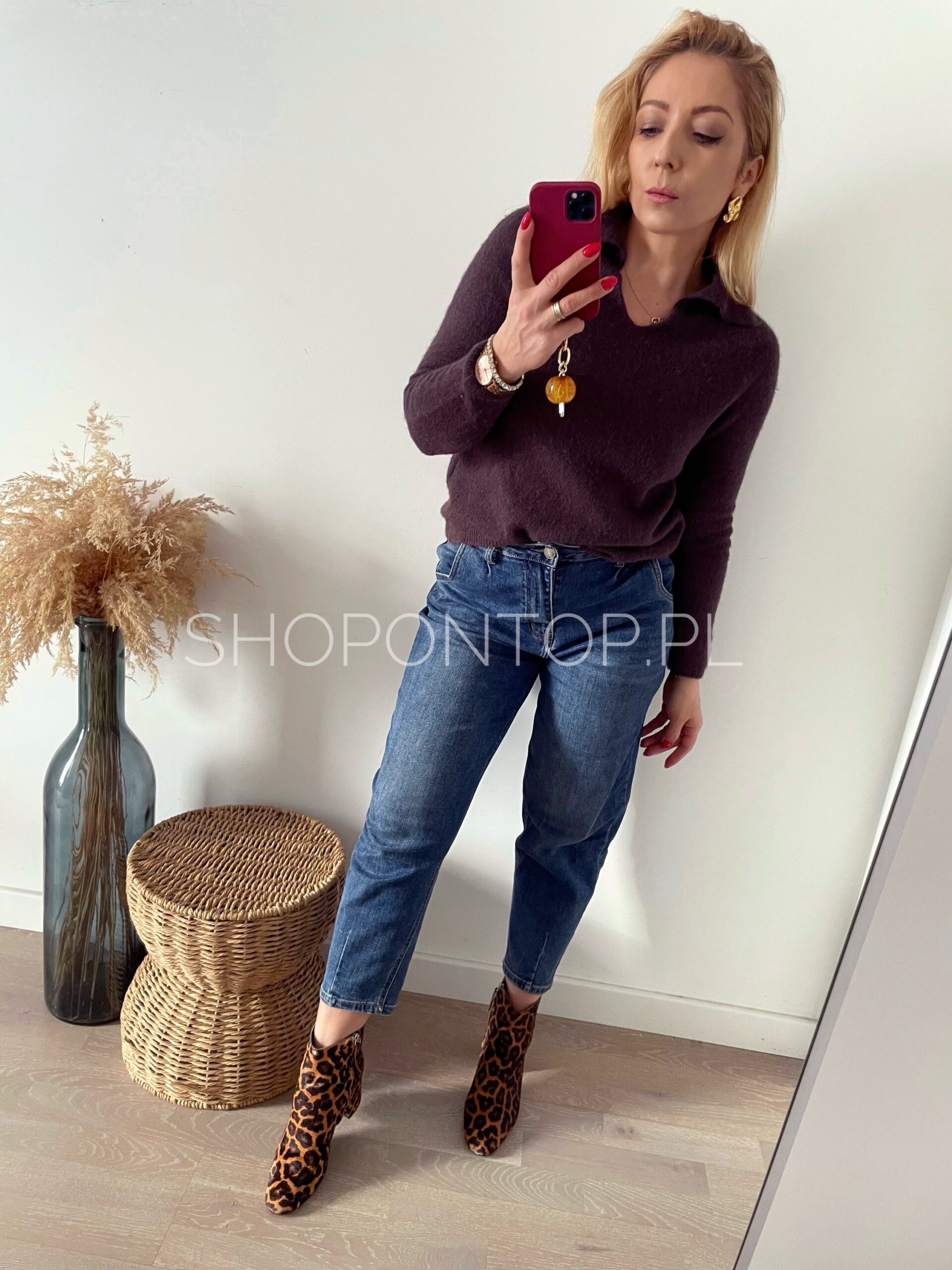 Piękny sweter z elementem panterki, z dodatkiem dwóch kolorów.