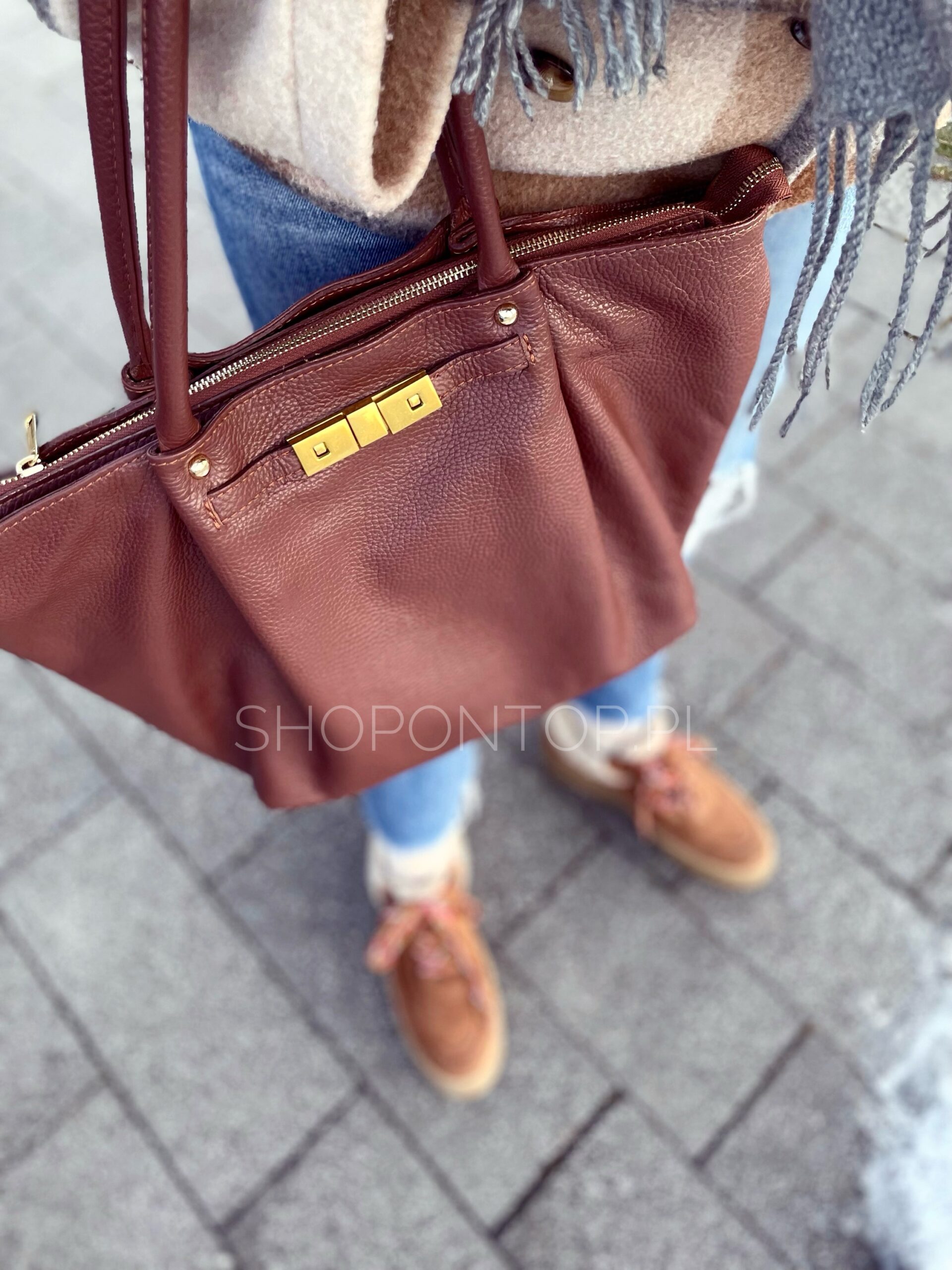 Kolor jasny brąz/ ciemny kamel.